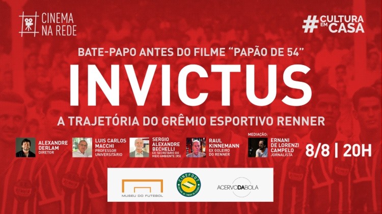 A live será mediada pelo jornalista Ernani de Lorenzi Campelo e contará com a participação de Luis Carlos Macchi (projeto Renner Vive!), Raul Kinnemann (ex-goleiro do Renner), Sérgio Bechelli (ex-juvenil rennista) e Alexandre Derlam (diretor do filme). A transmissão será pelas redes sociais (YouTube e Facebook) do Museu do Futebol. Imperdível!