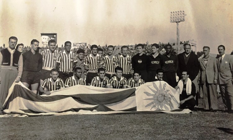A estreia do Renner em gramados estrangeiros ocorreu em um amistoso realizado no dia 18 de maio de 1955. O adversário do intrépido esquadrão rennista foi a equipe do Nacional e o palco foi o grandioso Estádio Centenário de Montevideo, o qual havia sido erguido com a honrosa missão de sediar a Copa do Mundo de 1930.
