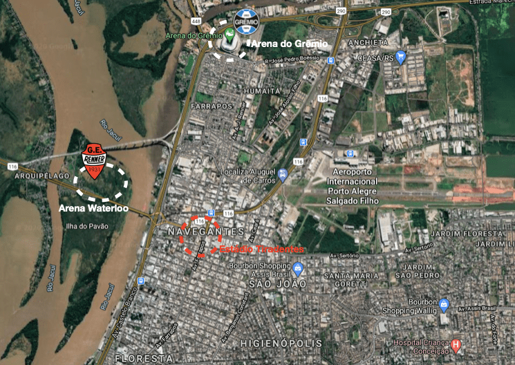 Para minimizar o esmagamento geográfico do Waterloo, foi agendada uma reunião com o então Prefeito de Porto Alegre, Dr. Leonel Brizola, para o dia 23 de julho de 1957. Nesse encontro estavam presentes o Presidente rennista Mário Azevedo, o Presidente do conselho do clube Antônio Macchi e o vereador Dilvo Araújo. A pauta era a definição de um novo local para o Estádio Tiradentes.