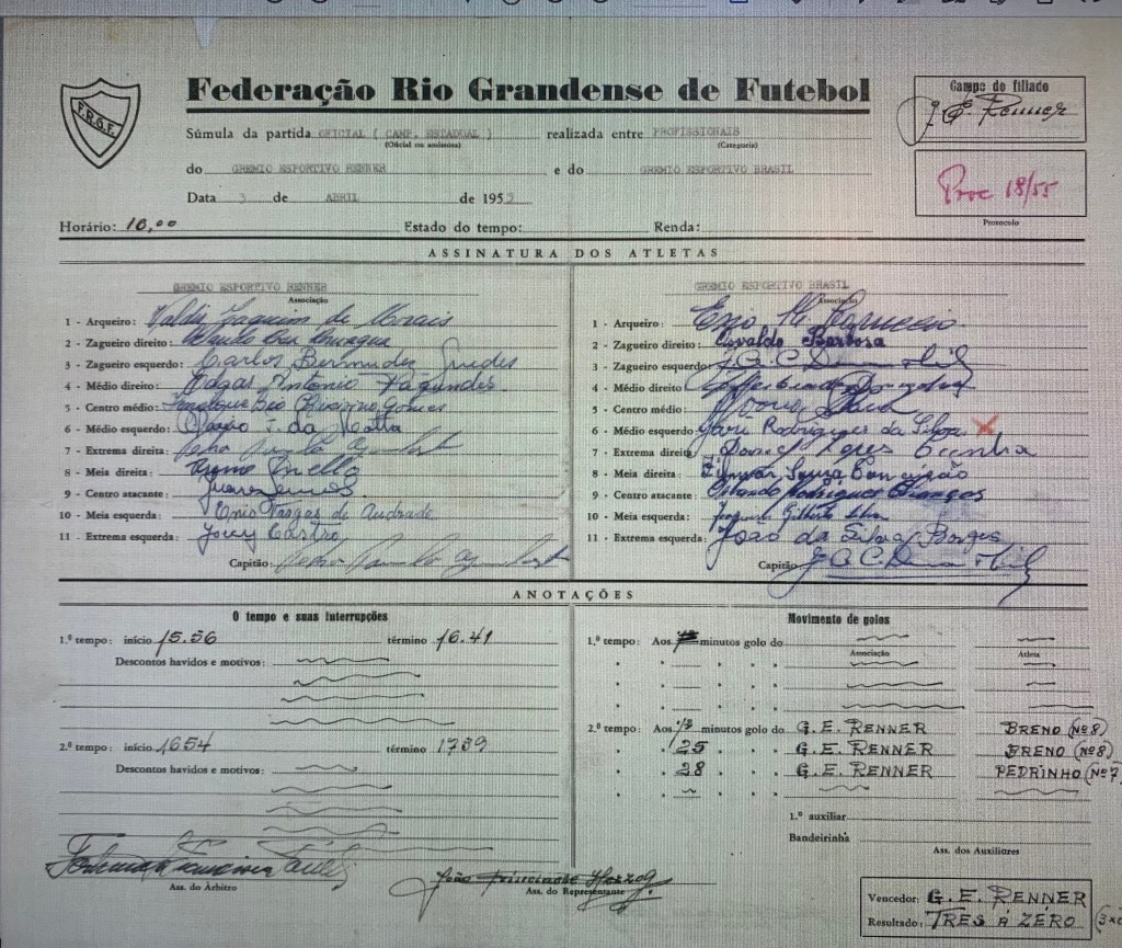Em 1954 o G. E. Renner fundado em 1931, 23 anos de história, 14 como clube amador. Como participante da Divisão de Honra do Futebol Gaúcho, acessou em 1945, e com só 9 anos de participação no futebol profissional, conquista o Campeonato Estadual.
