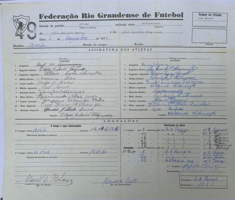Renner: Raul, Alduino, Raul Puccio, Bonzo, Gago e Dilson; Gilnei, Raimundo, Higino.